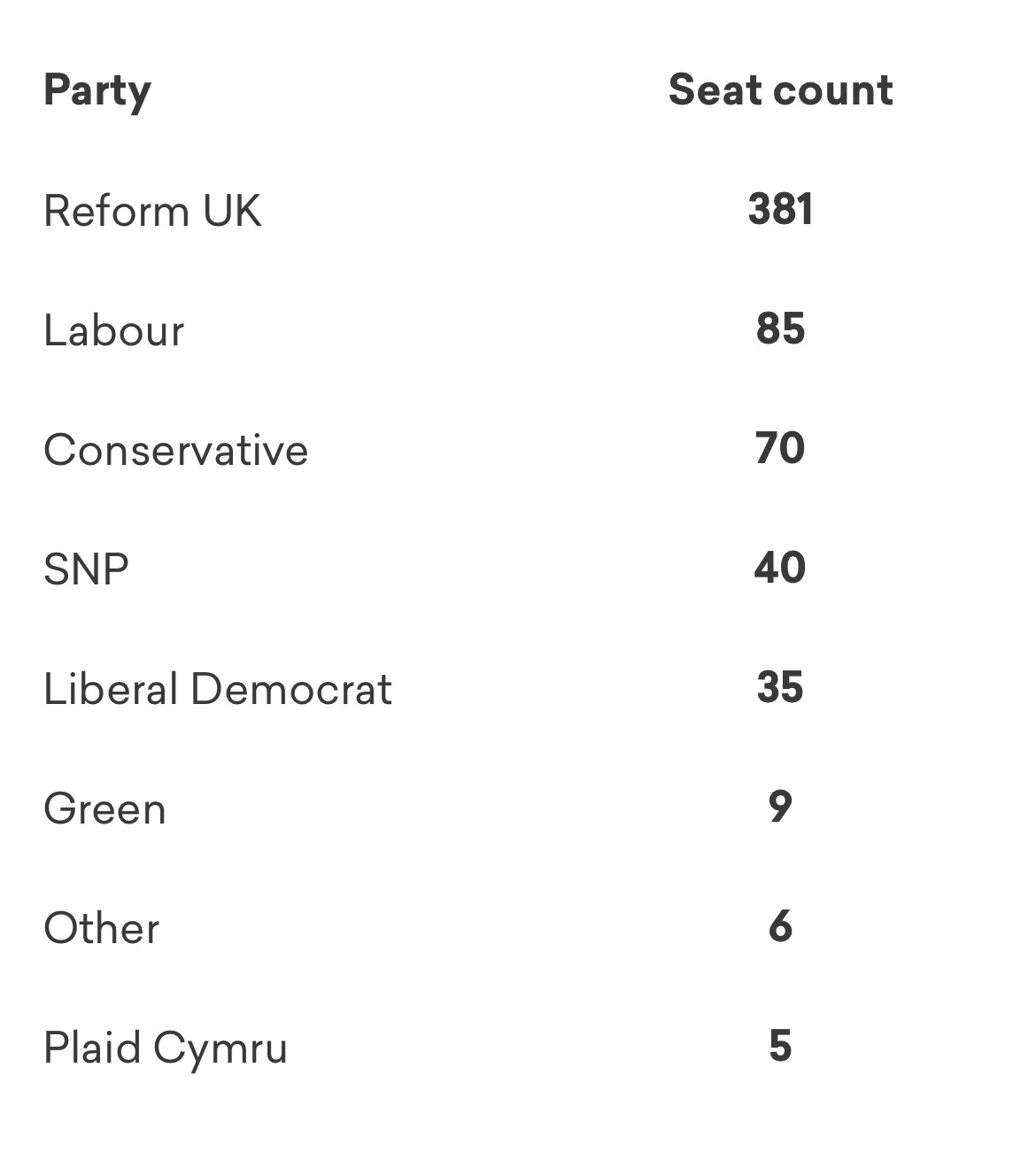 There are a lot of tight results in this poll - Reform UK wins over 100 seats on less than a third of the vote. Some of these could easily tip out differently, pointing to a hung parliament.