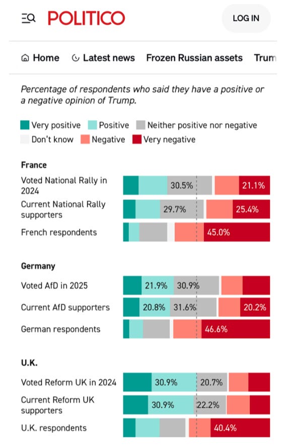 Reform UK voters are more Trump-friendly than even populist/radical Right voters in France and Germany.