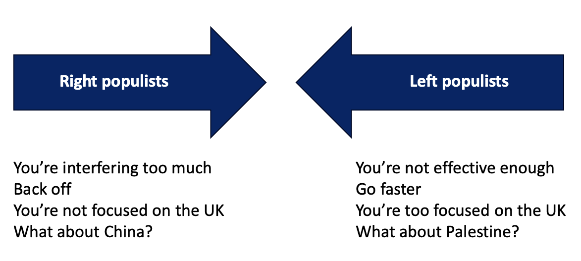 Here’s something I left out of the recent presentation on populism and Responsible Investment that fleshes out the point about the turf on which future fights are likely to be held. I don’t think Reform UK or the Conservatives are going to go for outright climate scepticism, they will focus on trade-offs.
