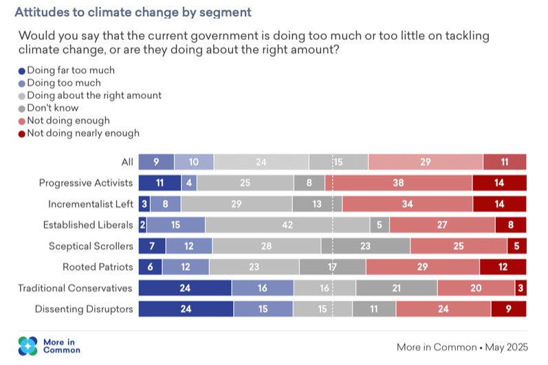 A lot of people have internalised a view that there is a strong consensus in favour of action that hasn’t actually been won / tested yet. I think they focus on the red bars in the first chart and the blue bars in the second. I see a lot of light red/blue and a lot of grey. I can understand why parties on the Right think there’s a fight to be had here. I would not waste time preparing for a fight on science, it’s going to be all about trade-offs - jobs, energy costs, security of supply.