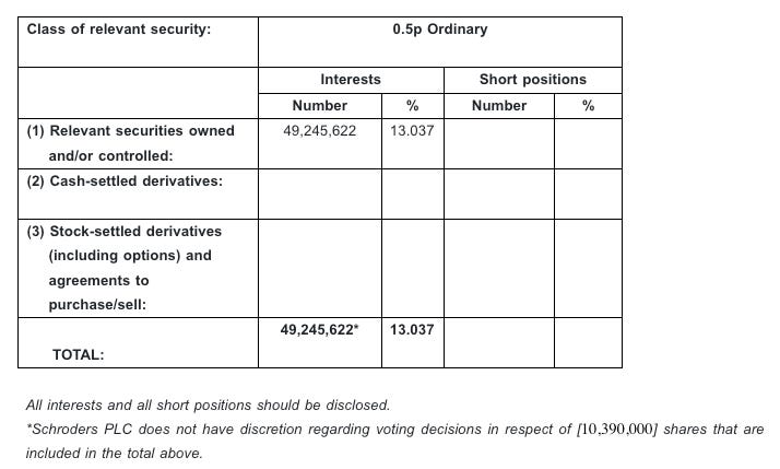 Below is a chunky one from Schroders. It has a big (13%) position in ME Group, but control of 2.75% of the total voting rights lies elsewhere.